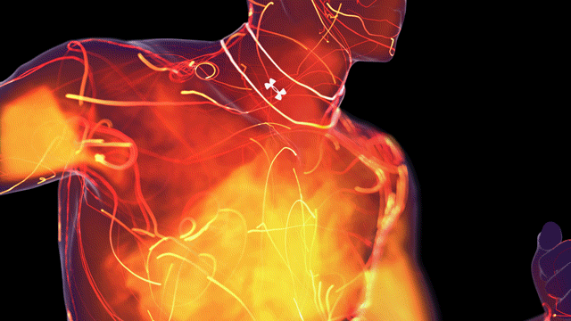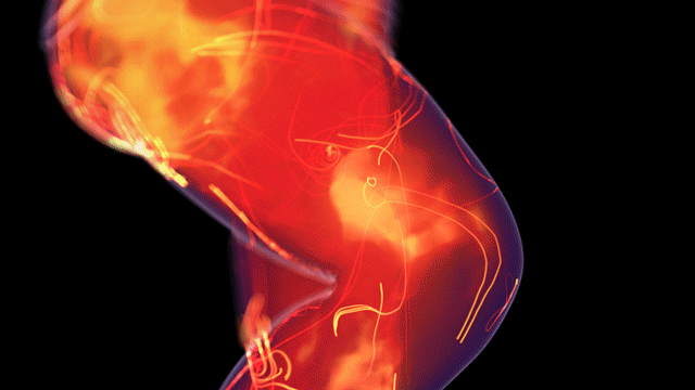 To illustrate the technology behind Under Armour’s Coldgear apparel, we were asked to create a new interpretation of thermal vision. As there are expectations for the viewer, in terms of understanding what they’re seeing, we needed to stick close to certain palettes and distributions of that gradient along the body. That said, we wanted to push it as far as we could by giving the form more fluidity for elegance, and small technological detailing to underline the circulatory system.